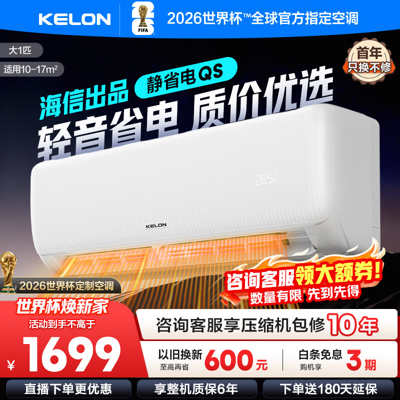科龙空调 海信出品 询单减100 静省电QS 大1.5匹挂机 新一级能效变频家用冷暖 卧室壁挂式智能低音 大1匹 一级能效 26QS【送十年压缩机包修】