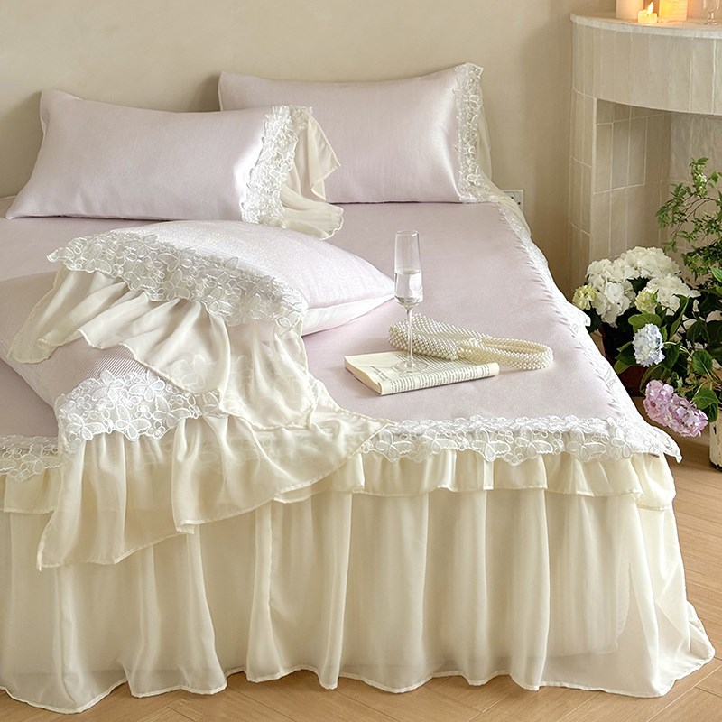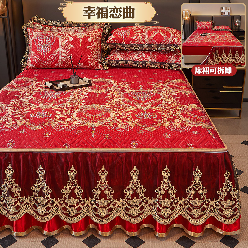 蕾丝公主风冰豆豆冰丝凉席三件套床裙夏天空调席软席子床罩可机洗