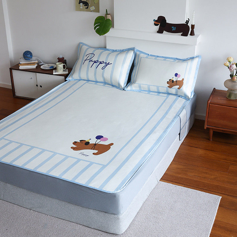 花时间生活夏季空调软席卡通印花凉爽冰丝席子透气床笠凉席三件套