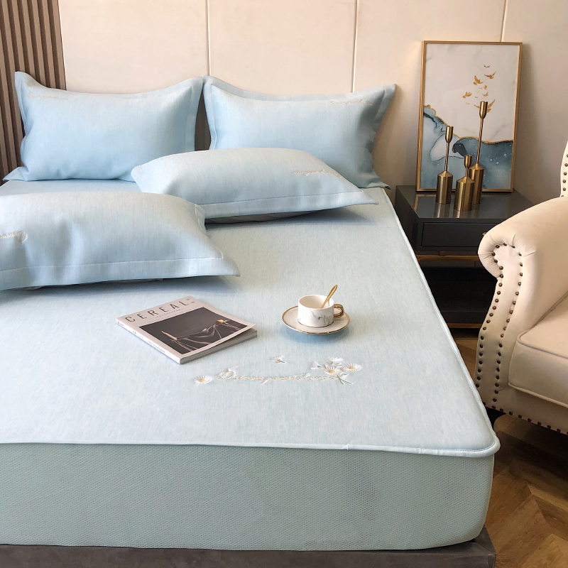 夏季凉感冰丝席简约n风刺绣空调夏凉席可水洗折叠丝滑纯色软席子