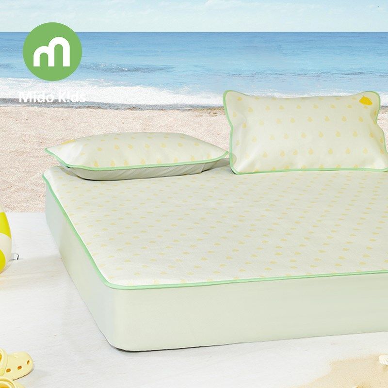 精选儿童冰丝凉席三件套床笠款空调软冰席夏季可折叠凉感席子黄澄