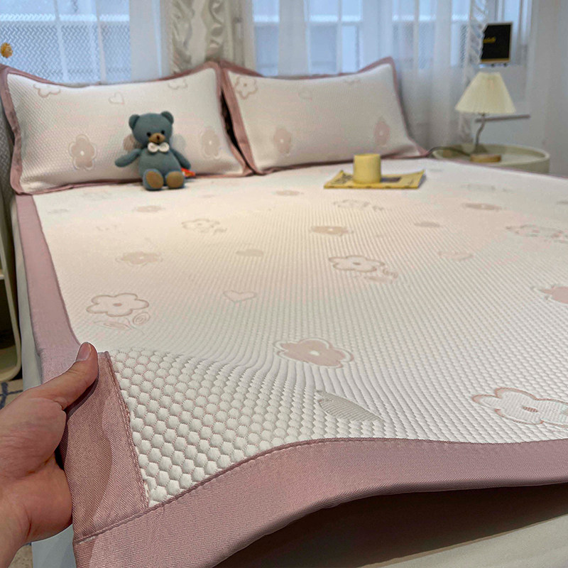 A类爆款冰豆豆凉席床单款三件套可机洗冰丝凉席乳胶软席子空调凉