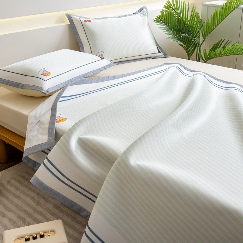 夏季凉感可水洗冰藤席三件套字母刺绣折叠式床席床笠款空调软席子