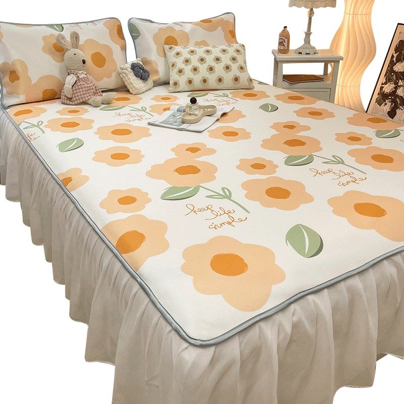 现货2023儿童夏季床裙冰丝凉席三件套家用可水洗折叠空调软垫子夏