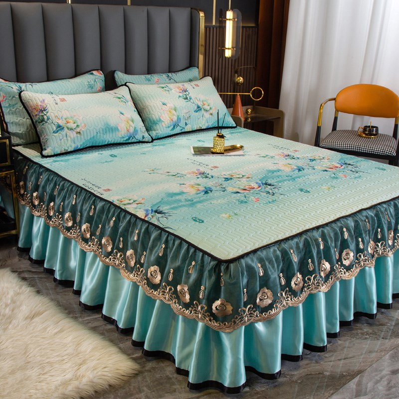 夏季床裙款乳胶凉席三件套花边冰丝夏凉垫可机洗水洗公主风空调席