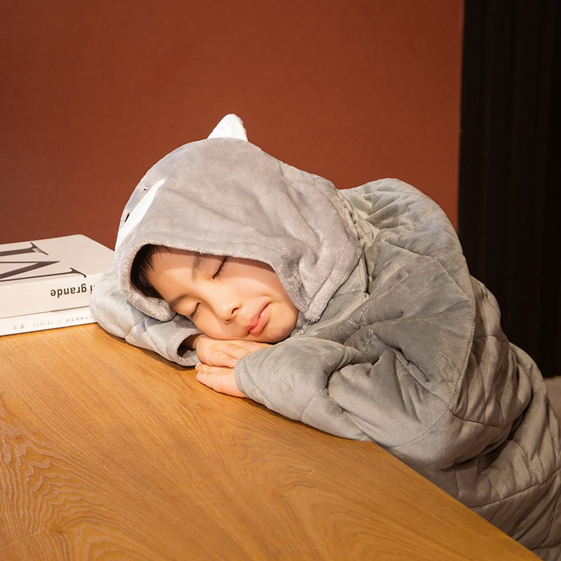 加厚保暖披肩毯子斗篷连帽披风办公室G午睡抱枕被子空调毯学生宿