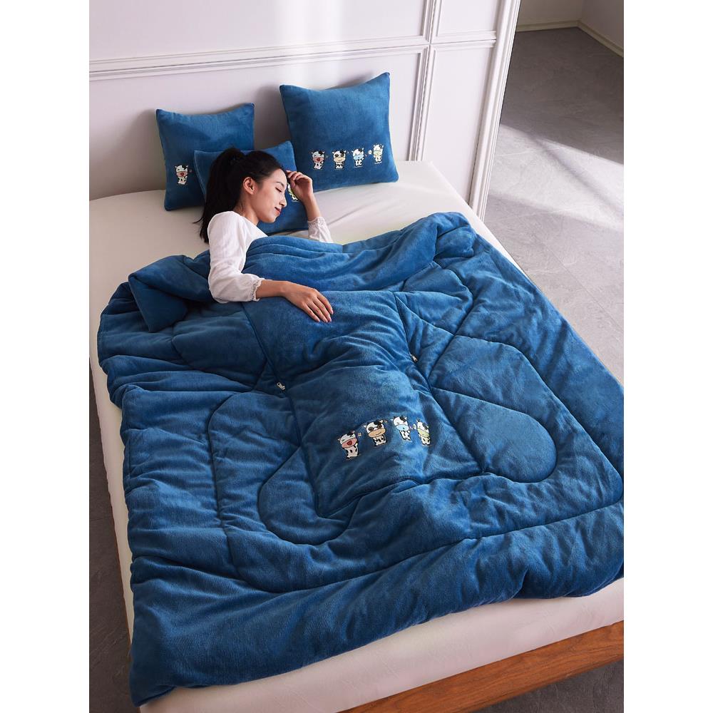 加厚冬季抱枕被子两用牛奶绒午睡枕头被汽车载靠垫办公室空调被子