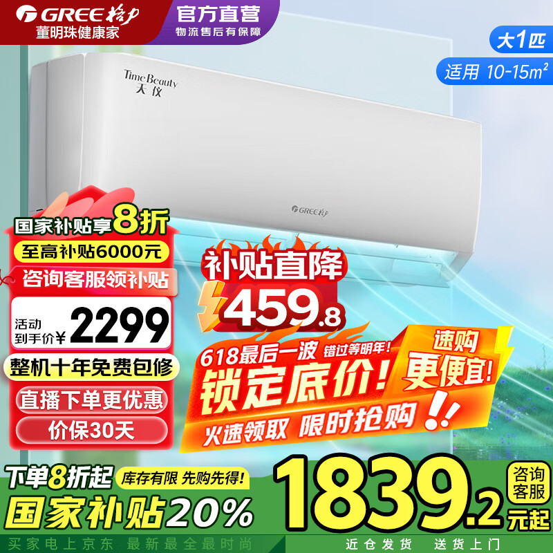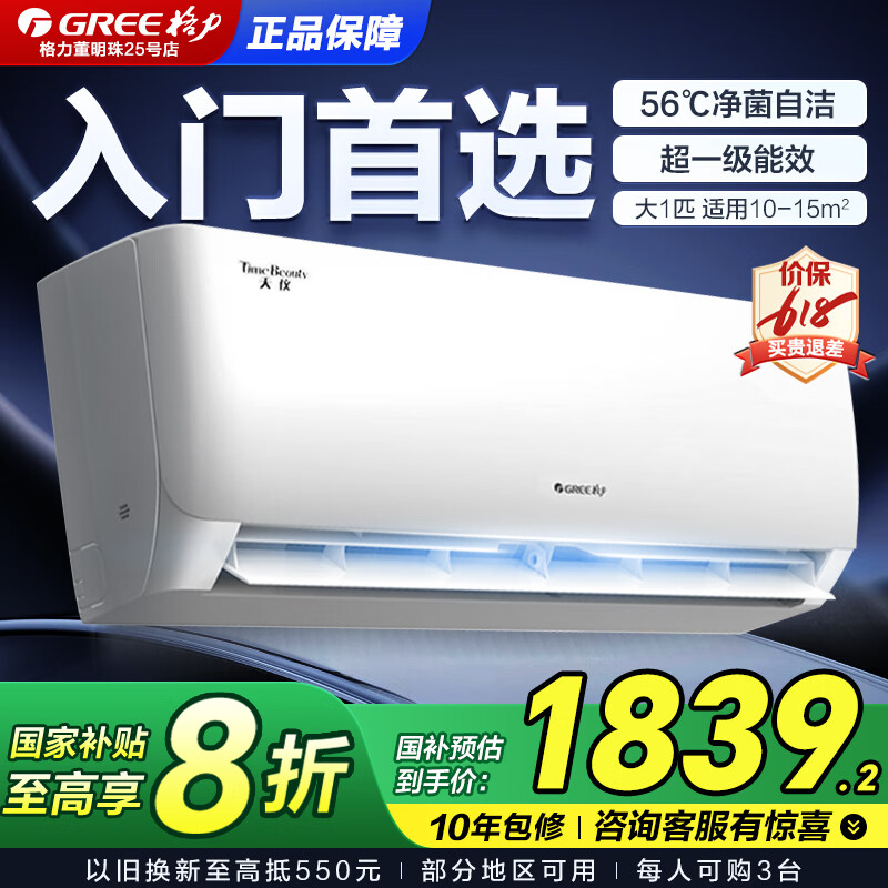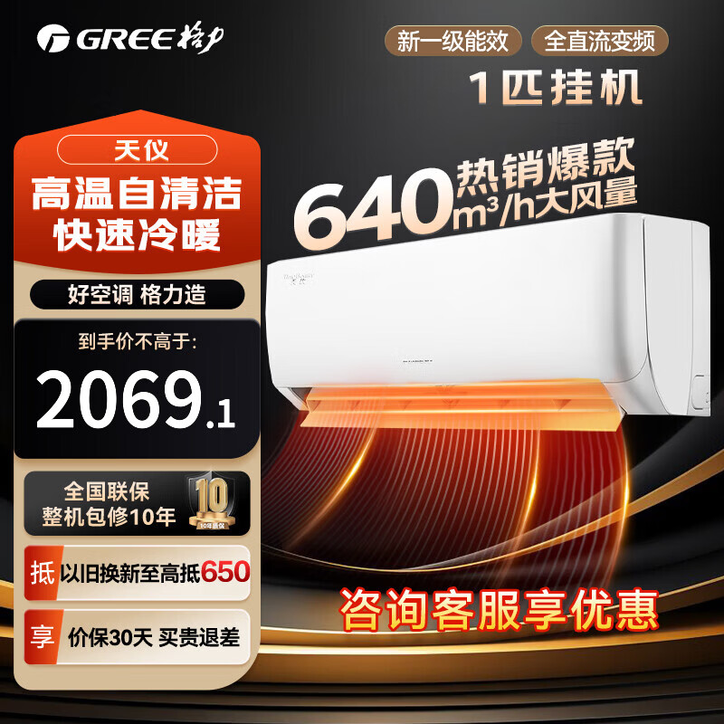 格力空调挂机天仪1.5匹大1匹快速冷暖独立除湿高温自清洁新一级能效变频冷暖卧室挂机空调以旧换新 天仪 大1匹 一级能效