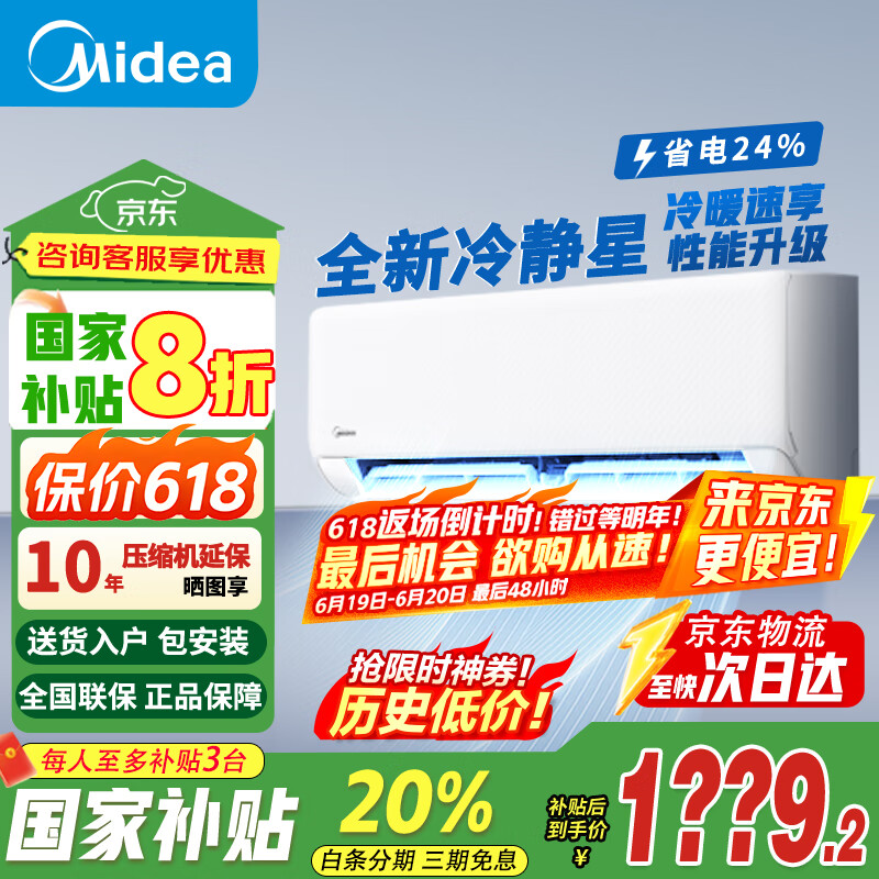 美的(Midea)空调套装 一级能效 变频冷暖节能自清洁家用客厅卧室空调 一套购齐 家电国家补贴柜挂套装三室一厅 酷省电2025版挂机+酷省电U柜机 两室一厅