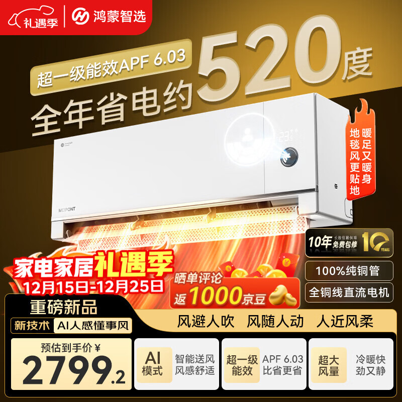 华为智选鸿蒙智选MEIPONT智能空调【家电补贴】空调挂机1.5匹风神之眼 AI人感 冷暖变频 省电超一级能效 风神之眼 AI人感 1.5匹 【国家补贴】