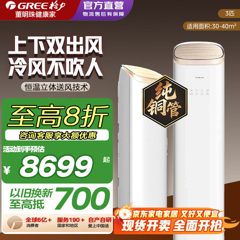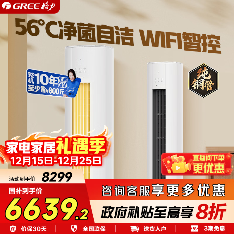 格力(GREE)空调3匹 云佳/云佳pro 新一级能效变频冷暖 纯铜管强劲制冷内外自清洁 节能省电 客厅立式柜机空调 云佳Pro 新升级 3匹 【省电性能双在线】