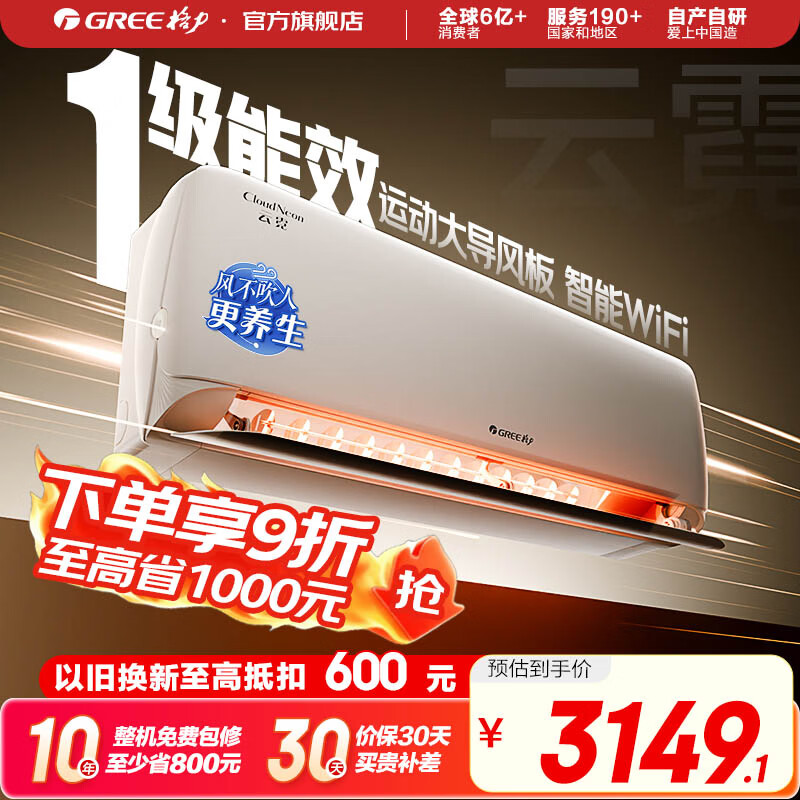 格力(GREE)空调 云霓 1级能效 变频冷暖 风不吹人 壁挂式卧室空调挂机 珊瑚玉色家电国家补贴 以旧换新 大1匹 一级能效 珊瑚玉色