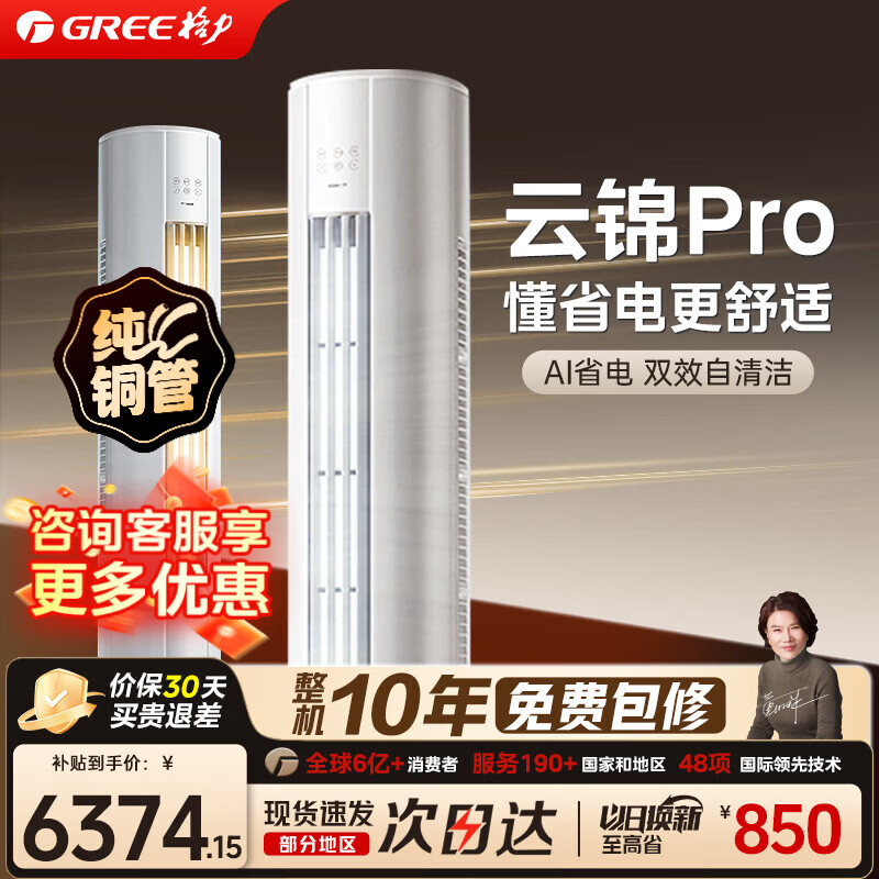 格力(GREE)空调 3匹 云锦三代 云锦pro 新一级能效 省电变频冷暖 客厅立式空调柜机 以旧换新 家电国家补贴 2匹 一级能效 云锦pro【AI升级款】