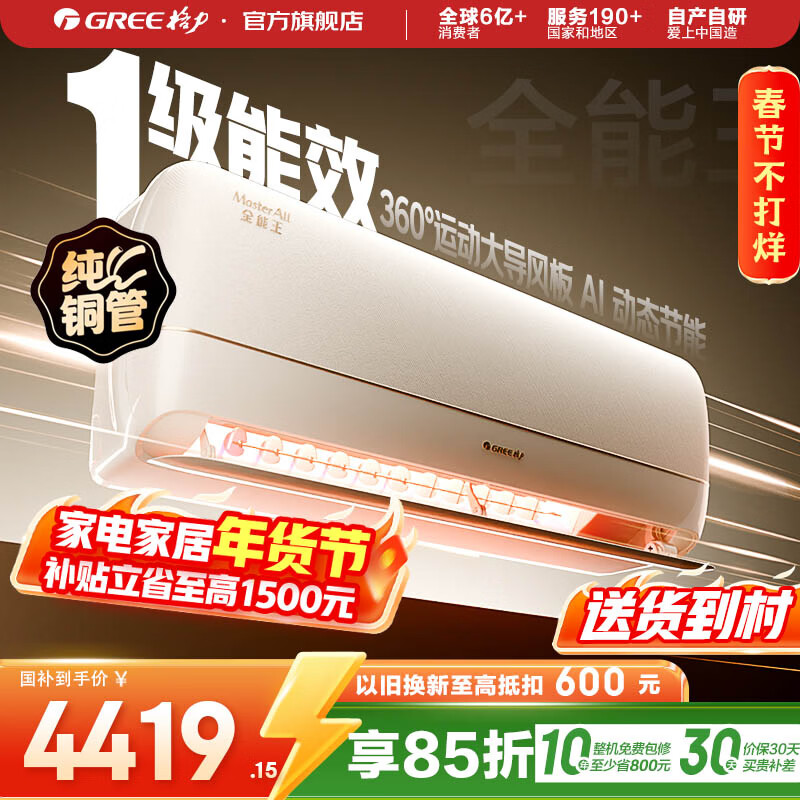 格力空调 1.5匹/大1匹 全能王 新能效 变频冷暖 自清洁 壁挂式 卧室空调挂机 家电补贴 全能王 新一级能效 1.5匹 挂机