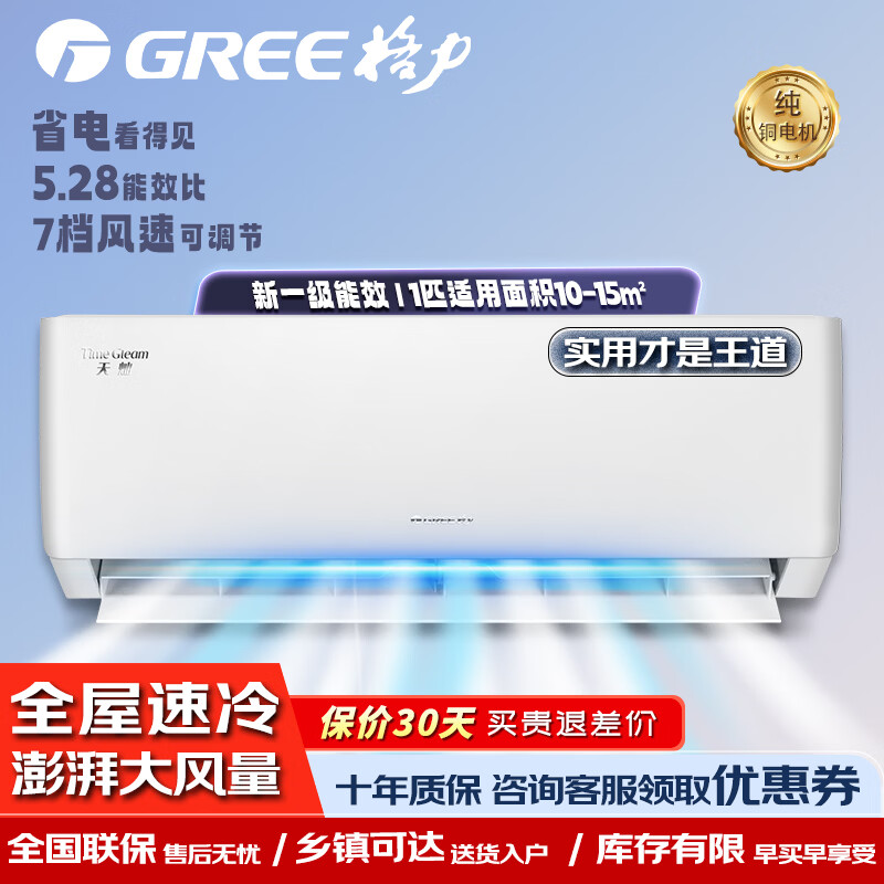 格力企业采购 空调 天灿/小凉神同款晶弘k1 全铜变频冷暖一级能效家用省电卧室壁挂式空调 正规发票 大1匹 一级能效天灿