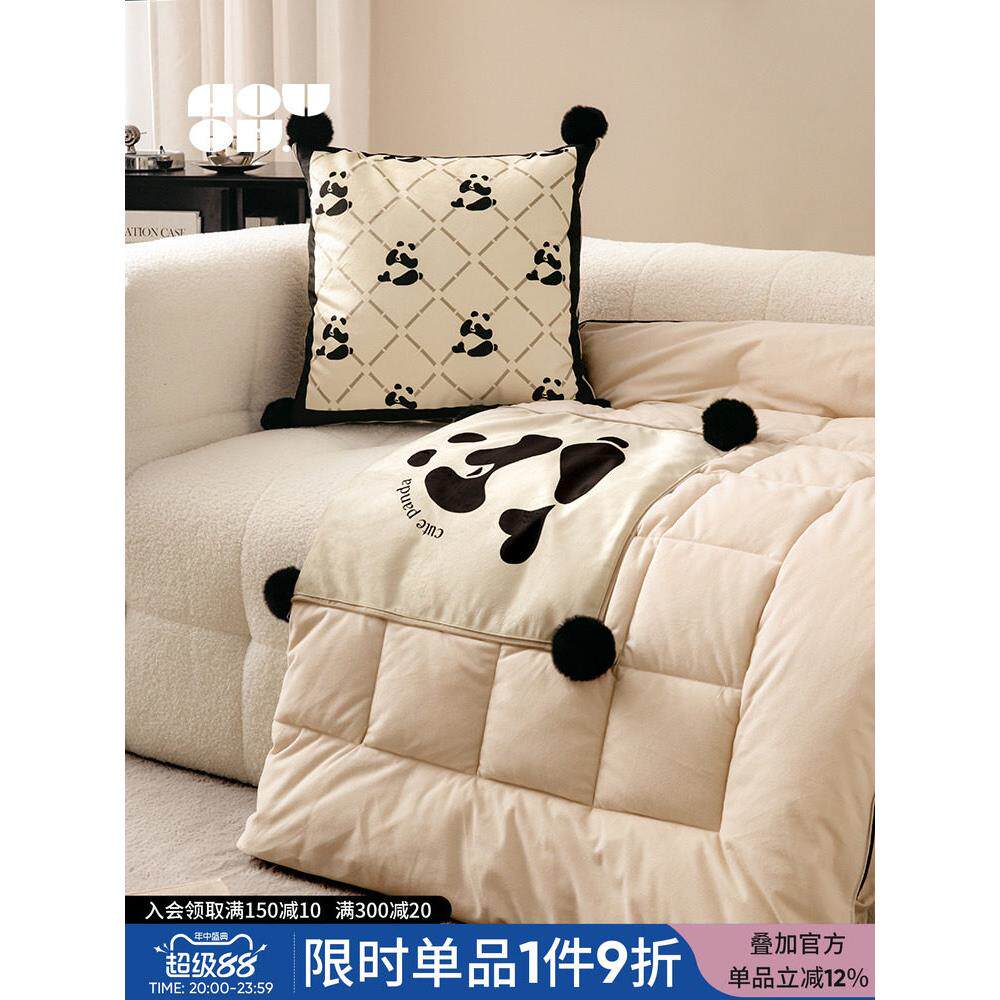 熊猫花花沙发抱枕被两用车载毯子二合一办公室可折叠空调被午休毯