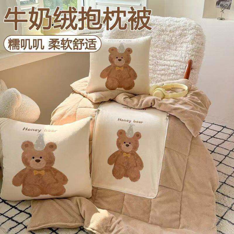 牛奶绒抱枕被子两用办公室午睡毯车载靠枕枕头被空调抱枕毯二合一