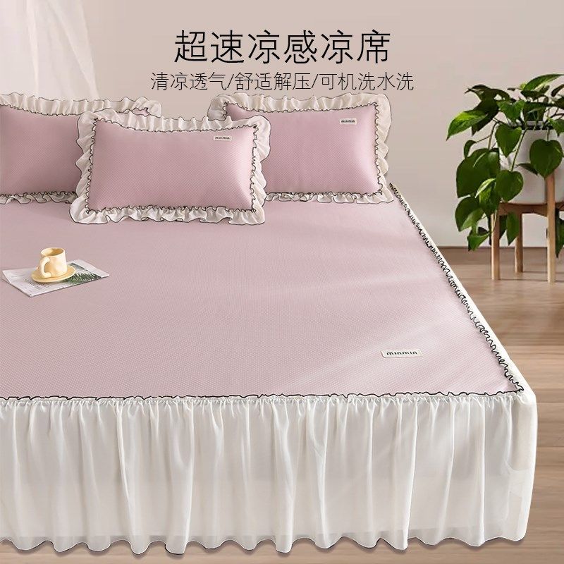 A类母婴级冰豆豆凉席三件套床盖床裙款夏季冰丝席空调软席凉感粉