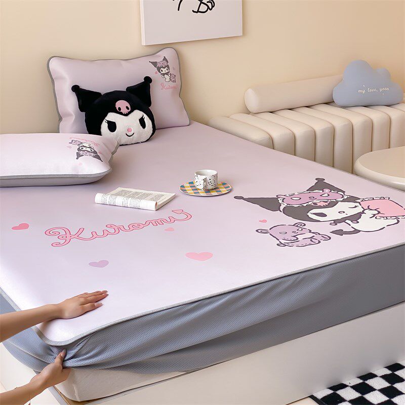 夏季可爱卡通冰丝凉席三件套可水洗机可折叠空调房软席子1.5米1.2