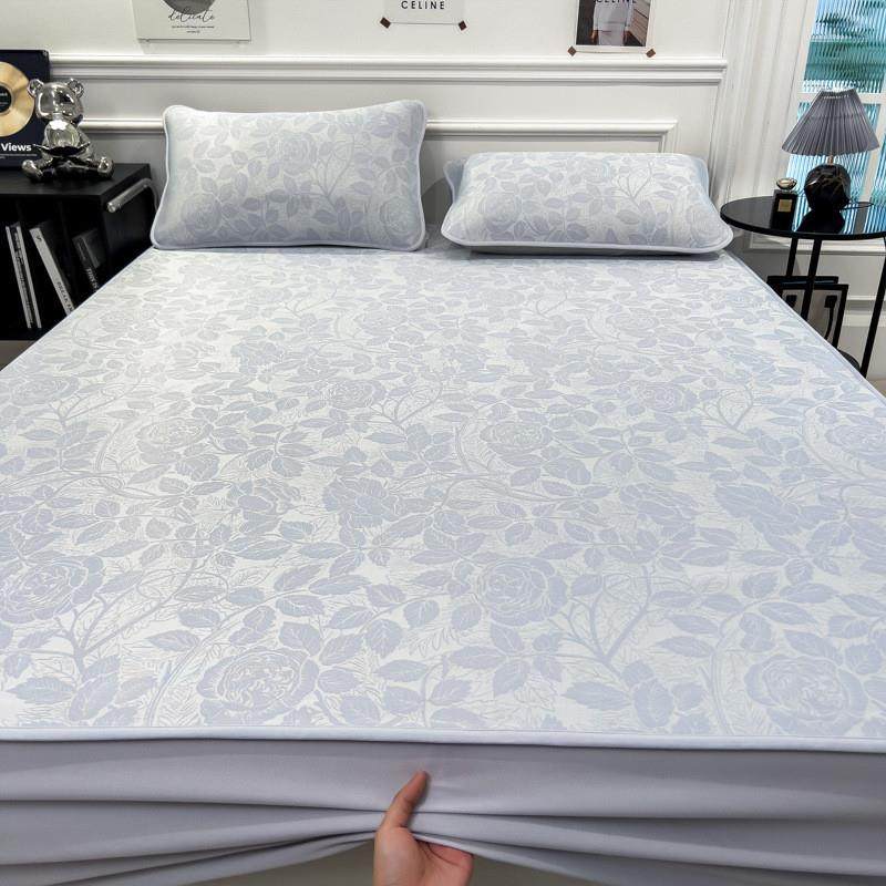 夏季提花刺绣床笠款凉席三件套冰丝席全包空调软席子家用凉感床罩