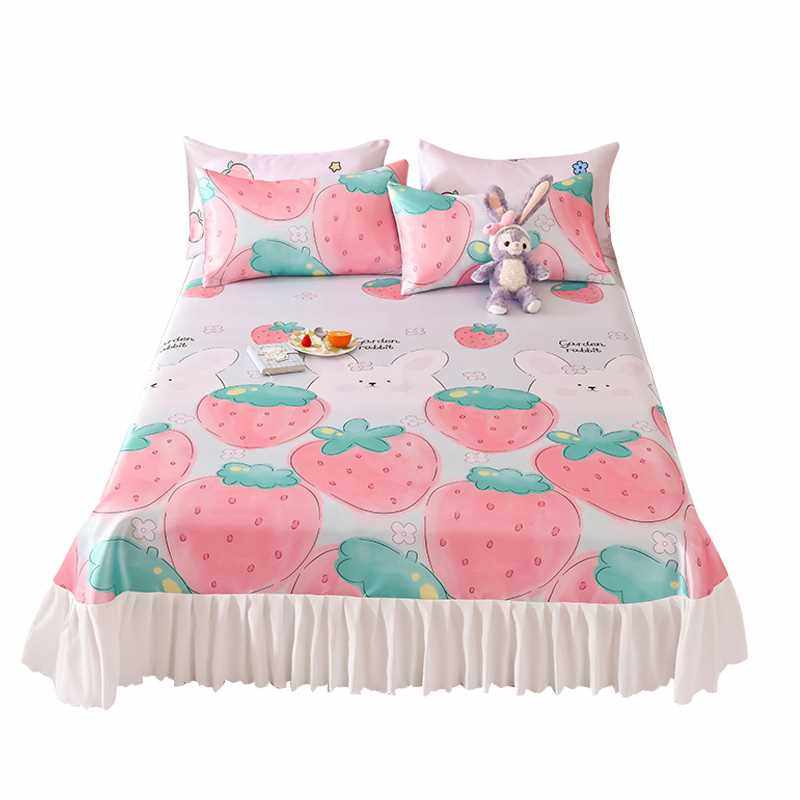 儿童夏季床裙冰丝凉席三件u套家用可水洗折叠空调软垫子夏天带裙