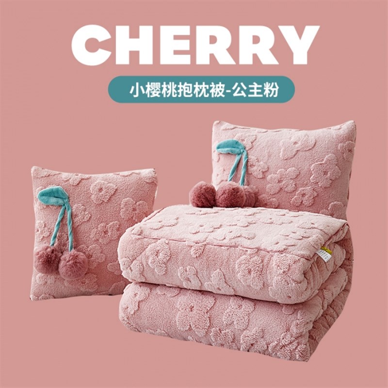 塔芙绒韩式小清新小樱桃抱枕被办公室F午睡枕头汽车载空调毯二合