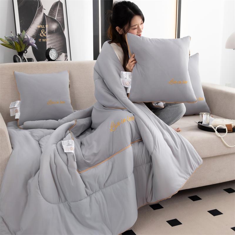 1厚被子b两用加枕纯色垫枕汽车空调被靠抱办公室午睡毛毯子靠枕6