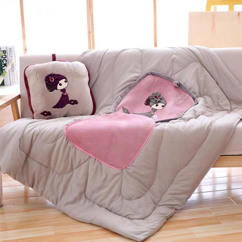 卡通手拎抱枕被子两用二合一学生宿舍办公室午睡折叠四季空调盖毯