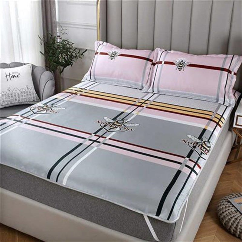 恒源祥夏季高端冰丝凉席三件套床单款可机洗水洗空调席可折叠裸睡