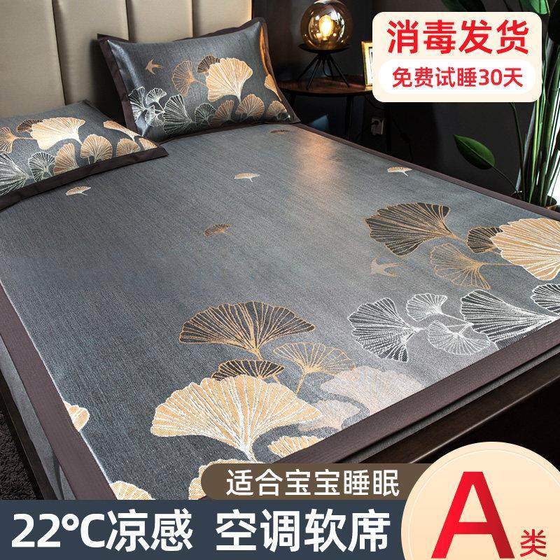 夏季1200D高端A类冰丝凉席三件套空调席双人丝滑可水洗折叠软席子
