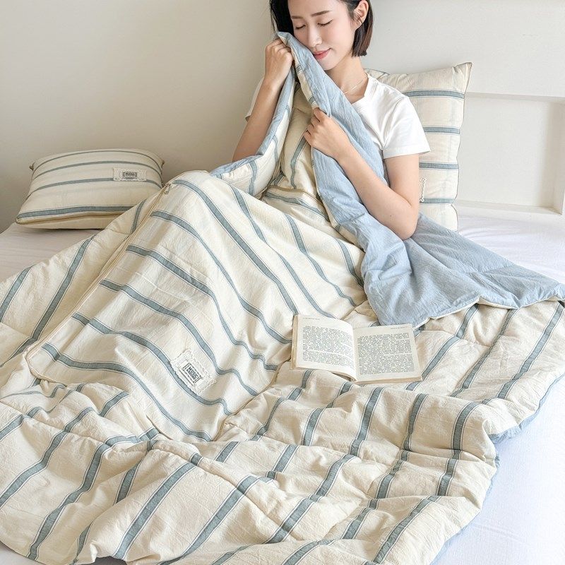 全棉A类口袋被!车上抱枕被子两用纯棉可折叠儿童学生午休空调被