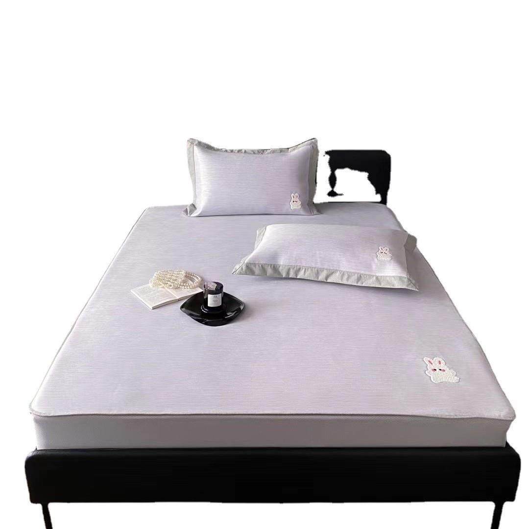 新款夏季凉席可机洗冰丝席三件套裸睡款床上空调凉席床单式折叠款