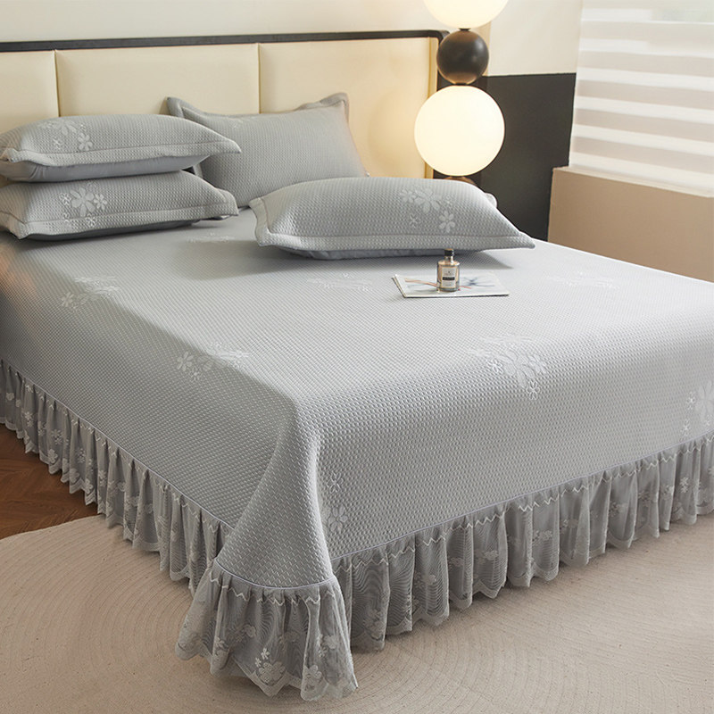 欧式凉感冰丝席床裙款三件套夏季可拆卸花边凉席夏天空调软席凉垫