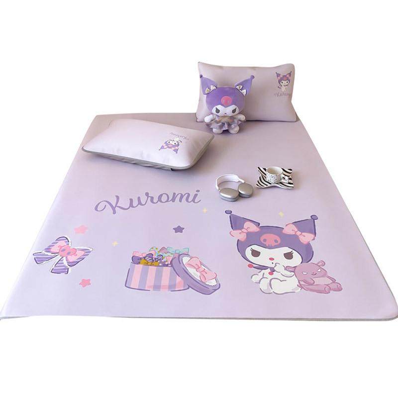 卡通刺绣冰豆豆凉感丝凉席二三件套学生宿舍软糯裸睡空调软凉席子