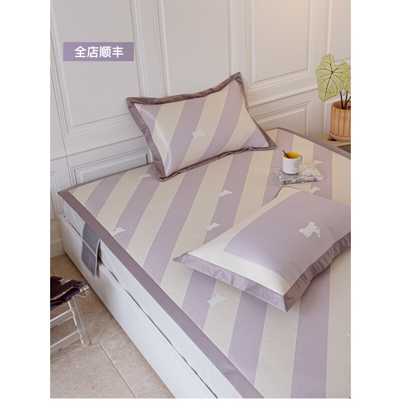 提花毛巾绣凉感冰丝凉席三件可爱卡通小清新空调席折叠软席子