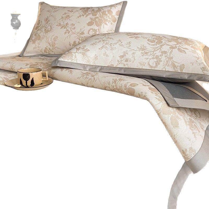 夏季碳光提花冰丝凉席可水洗简约ins风可折叠透气空调藤席三件套