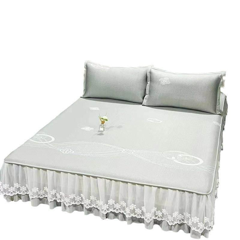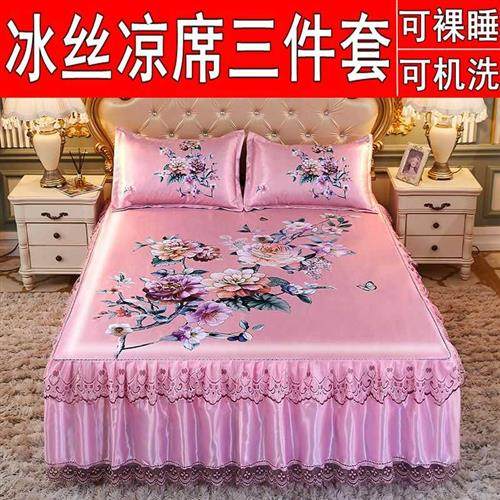 冰丝席三件套蕾丝边可机洗可摺叠空调凉蓆夏季可裸睡大版花软凉席