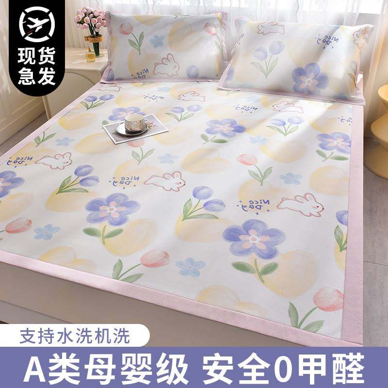 新款冰丝凉席可水洗夏季三件套床笠可折叠学生宿舍夏天席子空调冰