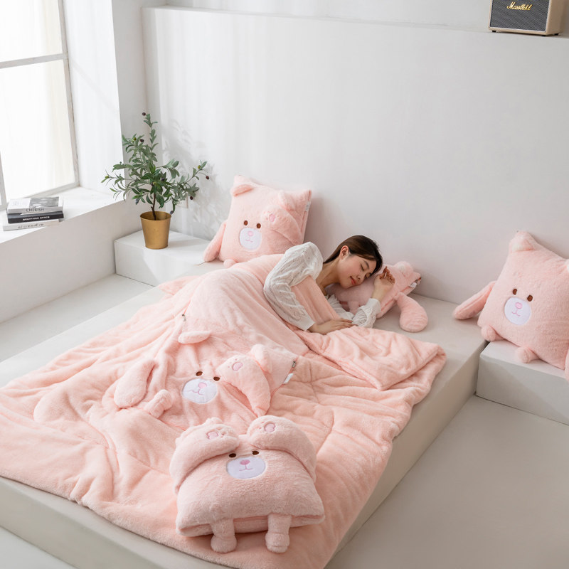 粉萌抱枕三合一沙发小盖毯办公室学生暖手抱枕被子加厚汽车空调被
