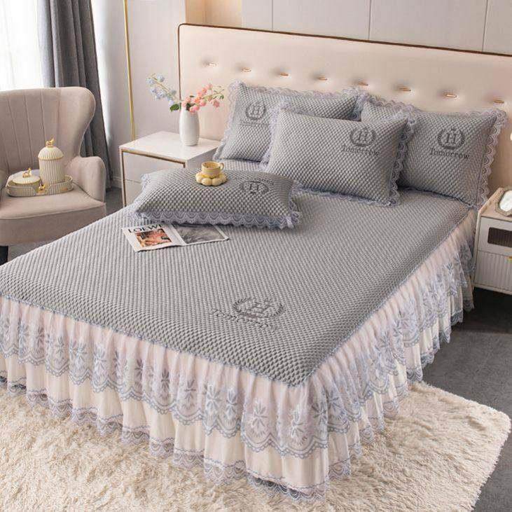夏季床笠式床裙款冰丝凉席三件套可拆卸水洗空调软席加厚蕾丝床罩