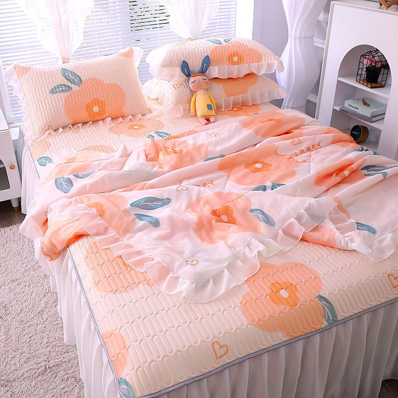 小清新夏季冰丝凉席三件可水洗少女心床裙款1.5米1.8m空调软席