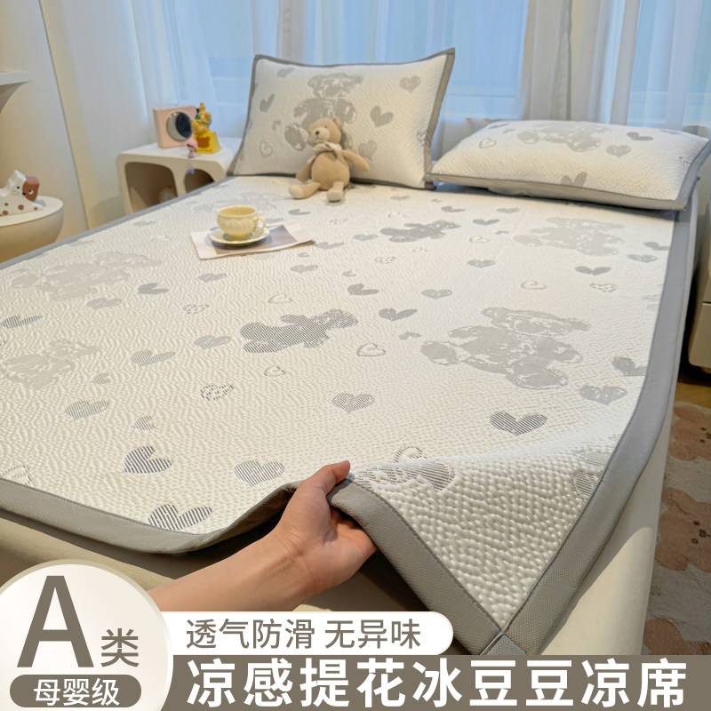 A类母婴级卡通冰豆豆凉席夏天冰丝席夏季空调软席可机洗三件套