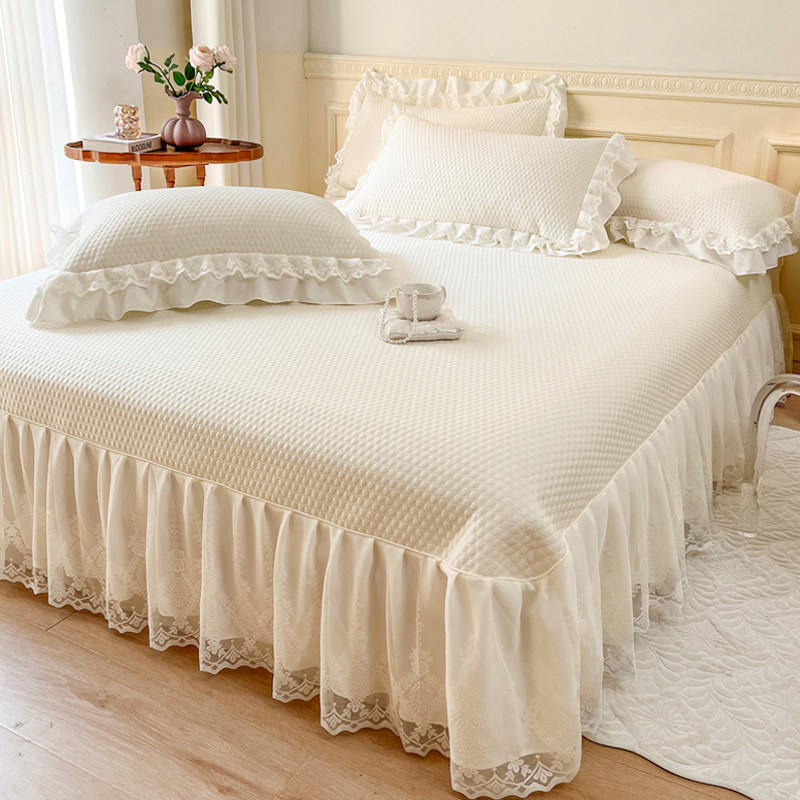 夏季公主风凉感丝豆豆冰丝凉席三件套可水洗机洗床盖床裙款空调席