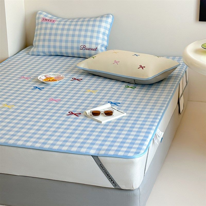 精选在耳边小清新夏季凉感冰丝凉席三件套ins可水洗空调软席子冰