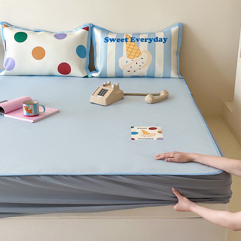 卡通冰豆豆凉席学生宿舍单人冰丝凉席可机洗床笠上下床空调软席子