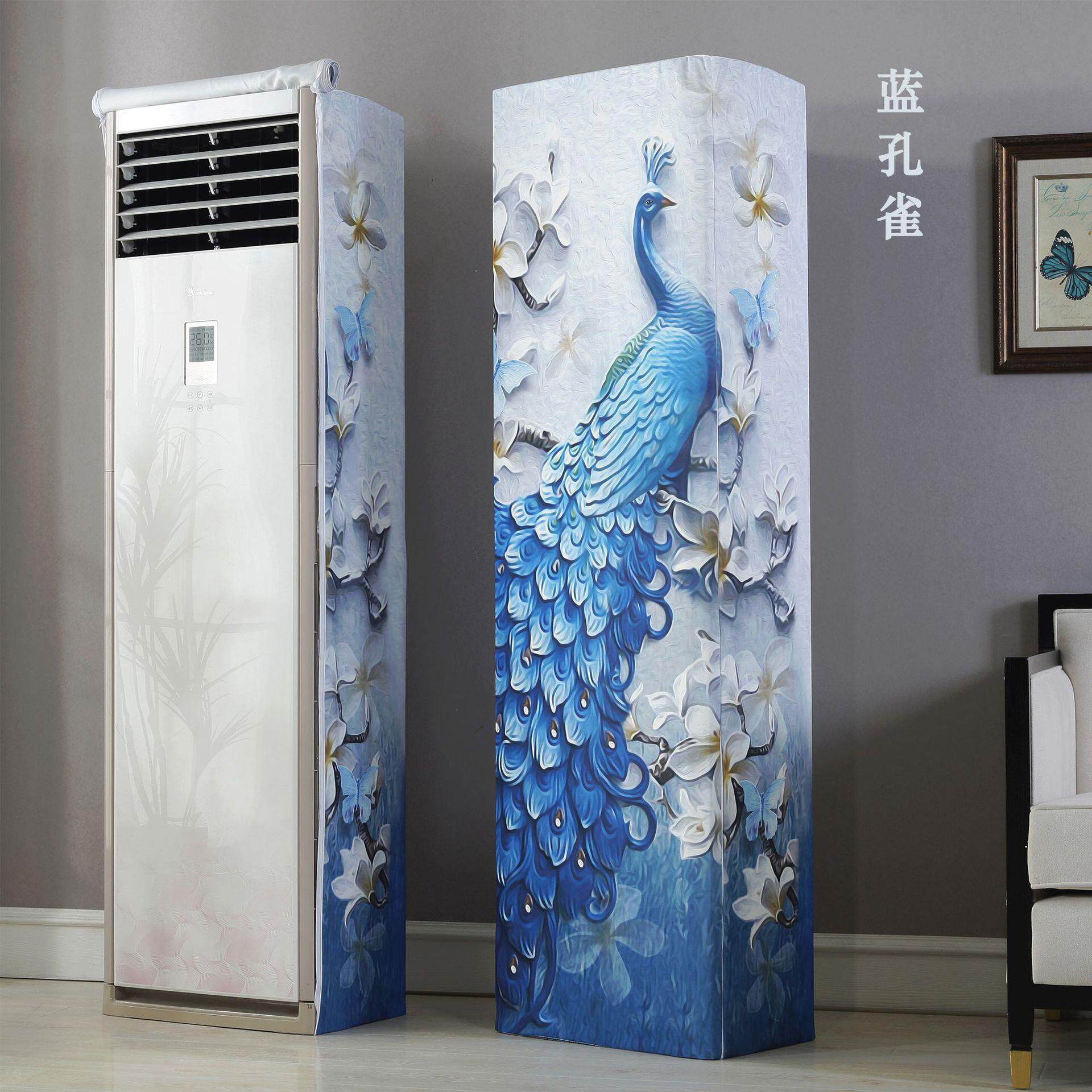 柜式空调罩开机免取方形立式空调适用弹力布料双拉链蓝色孔雀现代