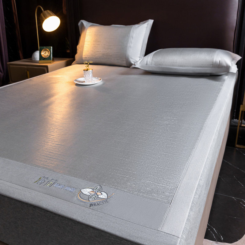 新款高端碳光冰丝凉席夏季纯色夏凉席三件套裸睡可水洗折叠空调席