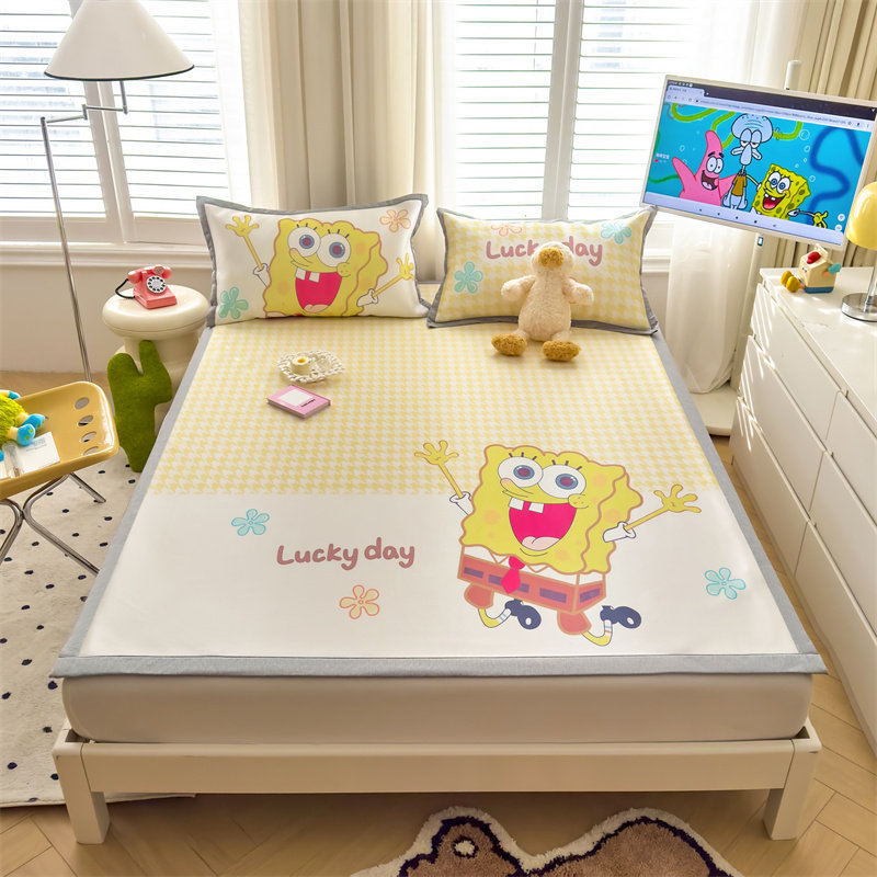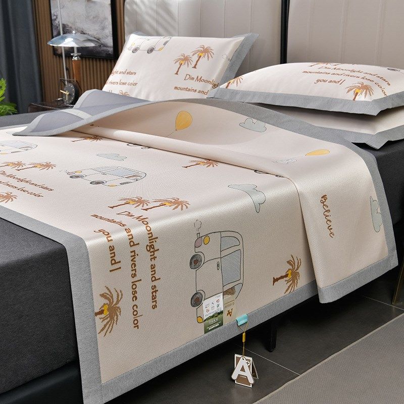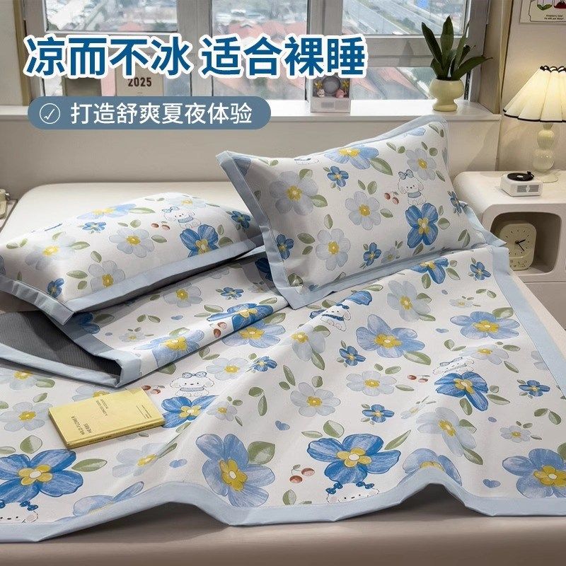 夏季凉感丝凉席三件套卡通冰丝席可爱印花空调席软席子儿童单双人