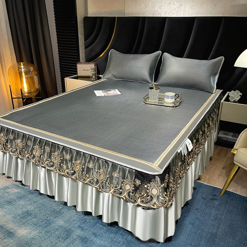 A类凉感丝凉席三件套冰丝A席蕾丝花边软席蜂窝空调席夏季床裙