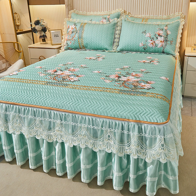 欧式可拆卸冰丝凉席床裙三件套夏季防滑床罩软席机洗水洗空调席子